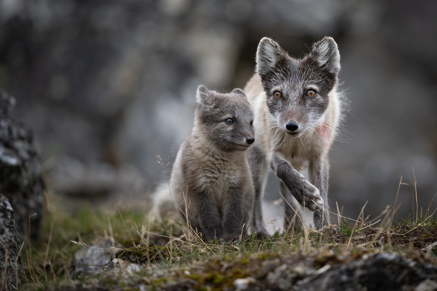 Arctic fox and its cub