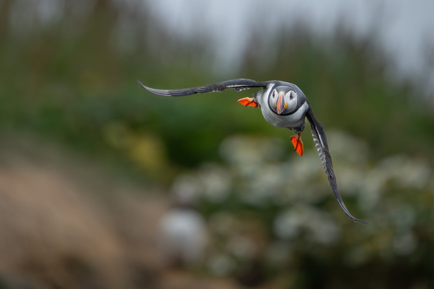 Sea parrot in flight