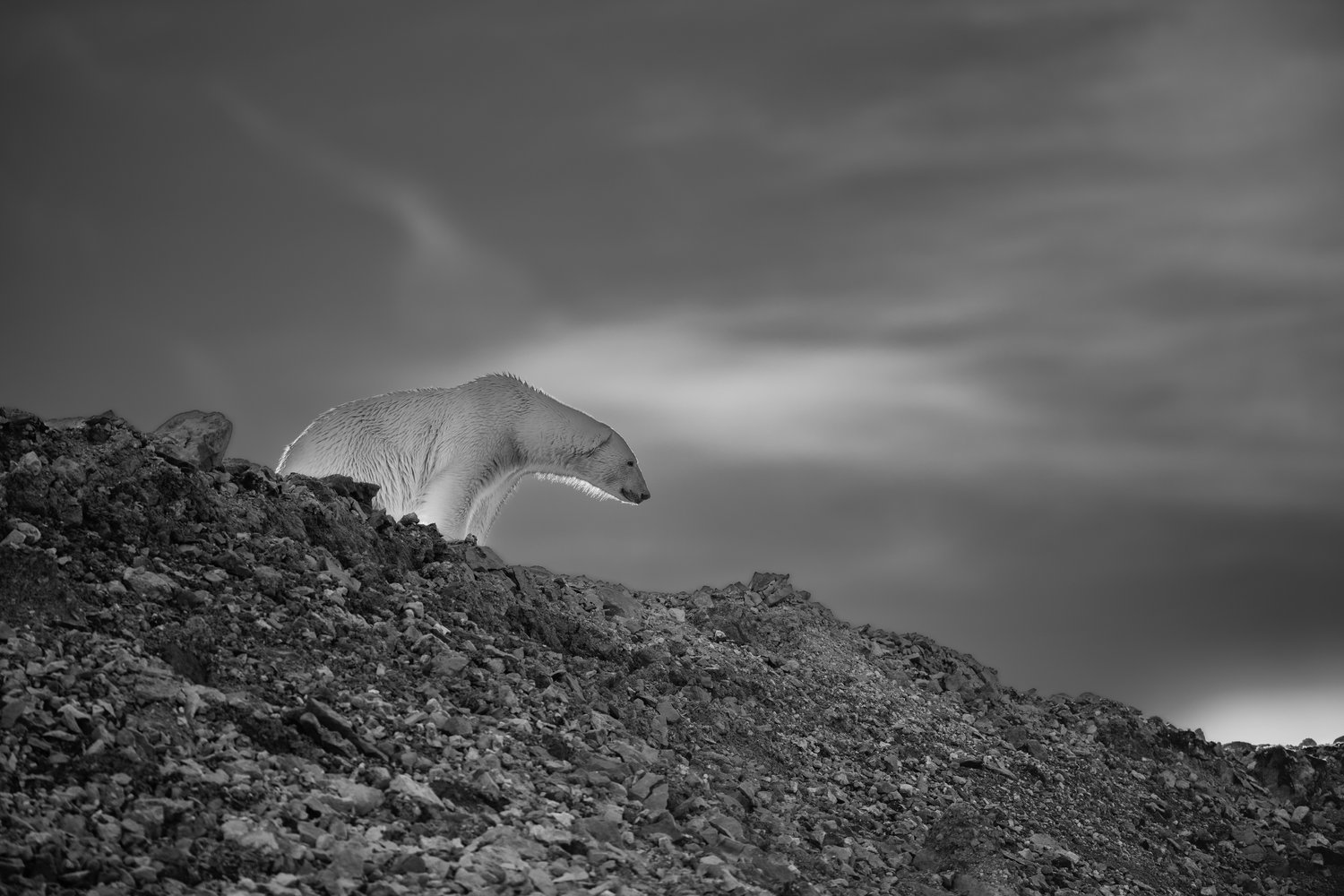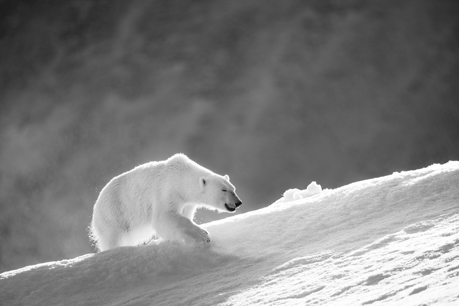 Polar bear walking downhill