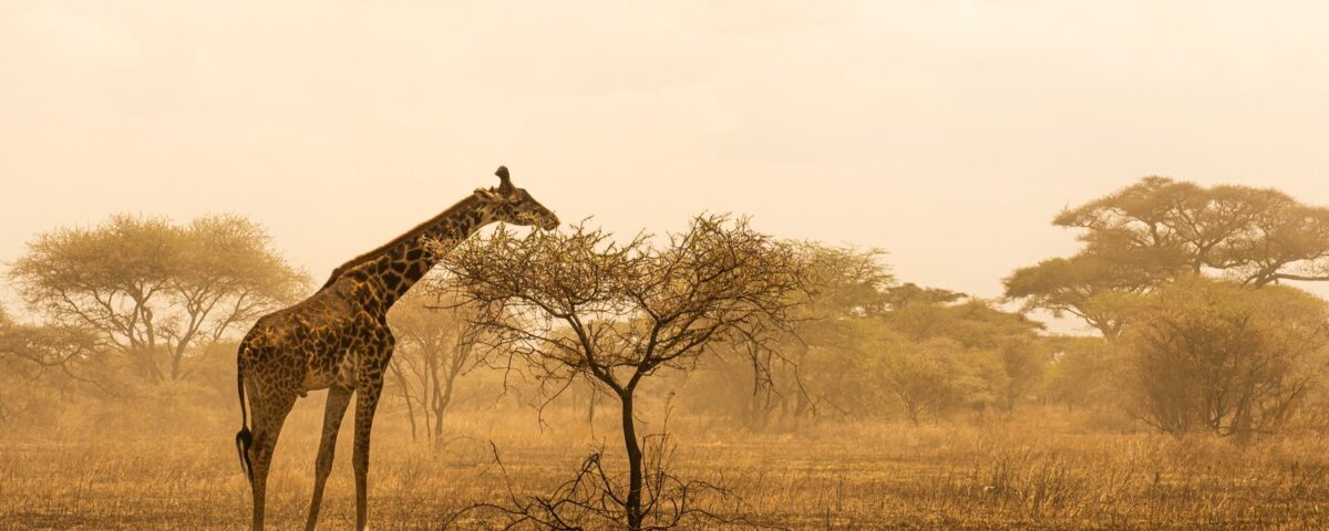 A giraffe cleans the treetop