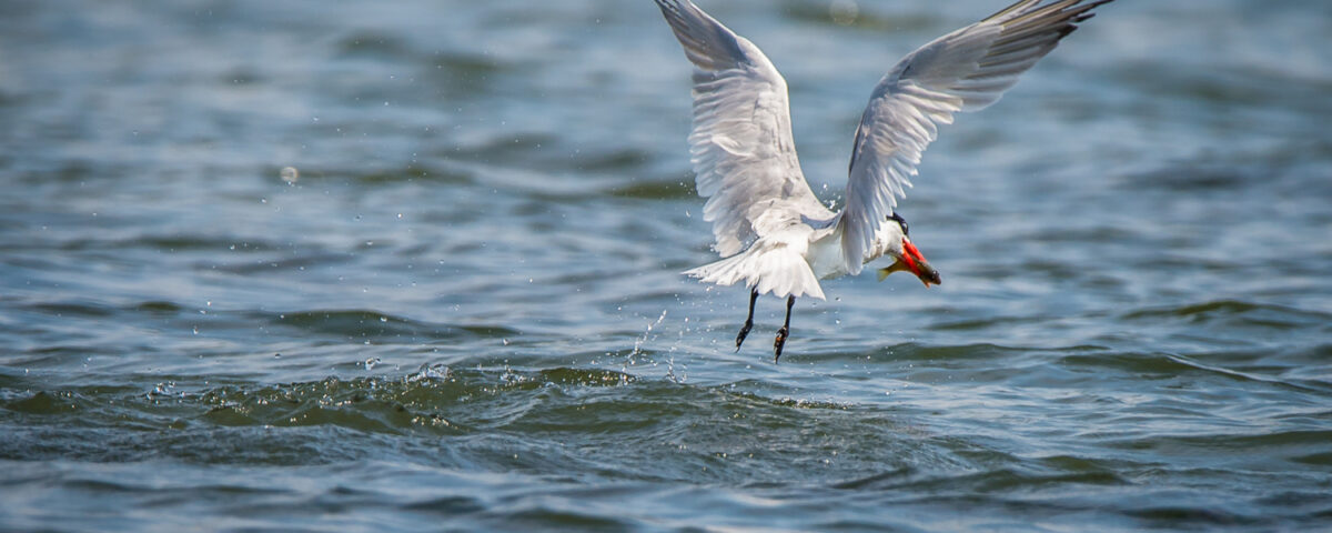Caspian Tern and a fish in its beak