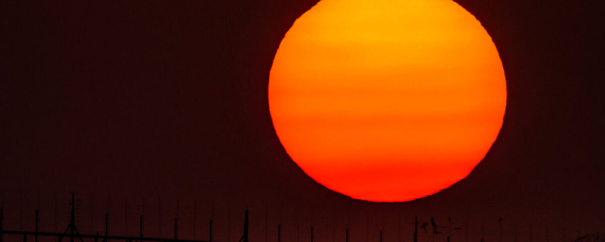 Sunset in front of a security fence